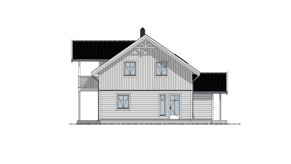 Haugfoss er et vakkert hus med god plass. Eneboligen har et klassisk uttrykk med sprosser på vinduene og dekorative mønekryss. Lave vinduer i kneveggene i andre etasje bidrar til å gi huset en vakker fasade.