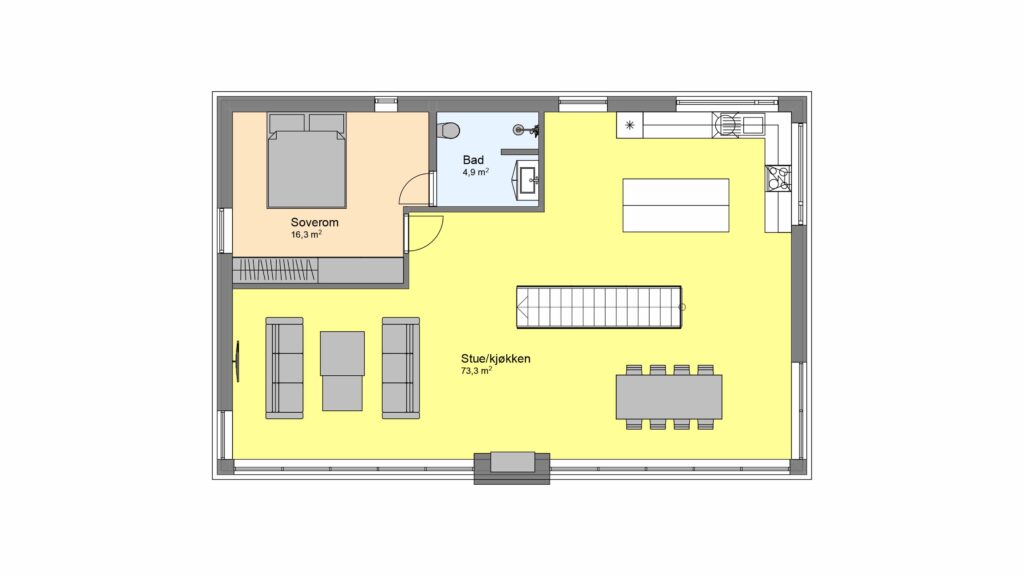 Jupiter er et moderne hus som passer perfekt på en utsiktstomt. De store vinduene i front lar deg nyte naturen og himmelens storhet til det fulle. Stuen og kjøkkenet ligger i annen etasje for den beste utsikten, og en åpen løsning gir en luftig og god romfølelse og en god sosial arena. Trappen midt i rommet lar deg kjenne på dette med en gang du kommer opp. På dette planet finner du også et stort soverom med tilhørende bad.