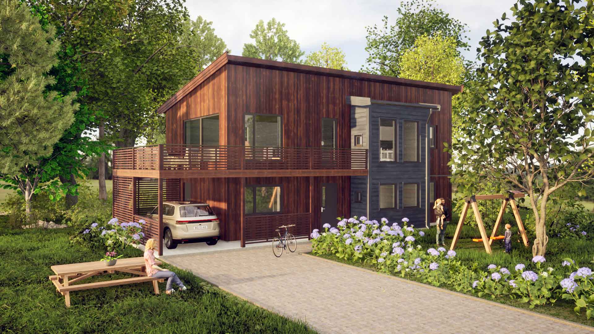 Vår serie moderne hus er designet med fokus på arkitektur i tillegg til gode og gjennomtenkte planløsninger. Stilen kjennetegnes av store vindusflater som gir husene særpreg og naturlig lys gjennom hele året, og et flatt eller skråstilt tak. Inne er det gjerne åpne og luftige løsninger som skaper gode sosiale arenaer, og fasadene har rette linjer og et spennende uttrykk.